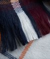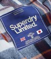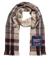 Superdry Capital Scarf. A lightweight scarf featuring a tri colour tartan style pattern all over, frayed ends and is finished with a large Superdry Limited logo patch on one end.