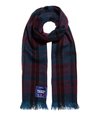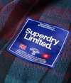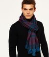 Superdry Capital Scarf. A lightweight scarf featuring a tri colour tartan style pattern all over, frayed ends and is finished with a large Superdry Limited logo patch on one end.