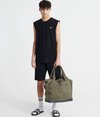 Superdry men's Edit tote bag. This large tote bag features a large main compartment with zip fastening, an inner sleeve with hook and loop fastening, and an inner zip fastened pocket. A zip fastened pocket can be found on the front of the bag, and an open pocket is on the back. The bag also features two grab handles and an adjustable shoulder strap which can be removed. Finished with a rubber Superdry logo badge on the front.
