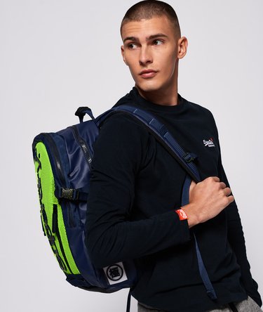 Superdry men’s mesh tarp backpack. This practical rucksack has multi-function compartments including a padded laptop sleeve, suitable for a 17” laptop, and a tech outer compartment complete with a headphone cable eyelet. Combining function with comfortability, this backpack has a ventilated back panel, adjustable padded shoulder straps and a grab top handle. The backpack is finished with a mesh front, raised Superdry logo and Superdry logo detailing on the zip pulls.