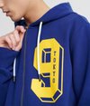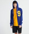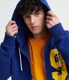 Superdry men's College classic zip hoodie. This hoodie features a zip fastening, two front pockets, a drawstring hood, fleece lining and a large textured Superdry graphic on the chest. Finished with ribbed cuffs and hem and a Superdry logo tab on one side seam. The College classic zip hoodie is an essential for layering up this season.
