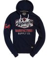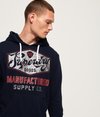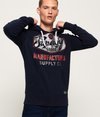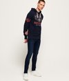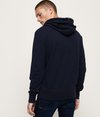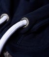 Superdry men's Heritage Classic Lite hoodie. This lightweight hoodie features a drawstring hood, a front pouch pocket, ribbed cuffs and hem and orange stitching on the seam. Finishing this hoodie is a Superdry graphic on the front and sleeve, a logo badge on the pocket and Superdry logo tab on the hood.