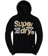 Superdry men's International monochrome oversized hoodie. The perfect partner to jeans and trainers this season, this oversized hoodie features a a crossover drawstring hood, front pouch pocket and textured logo graphic across the chest. The hoodie is completed with logo panelling down the sleeves.