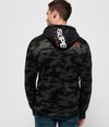 Superdry men's Storm international zip hoodie. This zip hoodie features three front zips pockets, thumb holes in the sleeves and a front zip fastening. The hoodie also features paneling down the sleeves and adjustable bungee cord hood and on the hem. Finished with a Superdry logo on one of the sleeves and back shoulder and Superdry graphic on the hood.
