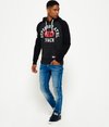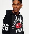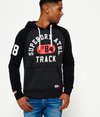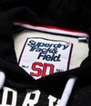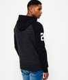 Superdry men’s Track & Field baseball hoodie. This throw over hoodie features contrast colour sleeves, adjustable drawstring hood and is finished with a cracked Superdry graphic logo across the chest and sleeve, also finished with a Superdry logo badge near the hem and cuff.