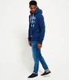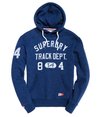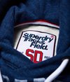Superdry men’s Track & Field hoodie. This crossover neck hoodie features an adjustable drawstring hood and features a faded Superdry graphic logo across the chest and team number on the sleeve. The Track & Field hoodie is finished with one front pouch pocket and a Superdry logo badge near the hem and logo tab on the cuff.