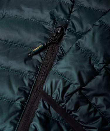 Superdry men's Core down jacket. This jacket features a main zip fastening, elasticated cuffs, two front zip fastened pockets and two inside open pockets, perfect for holding a phone or wallet. This jacket has been made with a 90/10 premium duck down filling giving a very high fill power and is finished with a reflective Superdry logo on the chest.