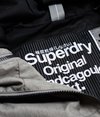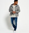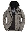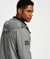 Superdry men's Dual Zip Through cagoule. Lightweight and shower resistant, this cagoule is fully mesh lined for comfort and features a funnel neck with zip adjusters, bungee cord hood and hem adjusters, elasticated cuffs and a full length zip fastening. With two zipped front pockets, the left one has a handy headphone routing eyelet, the cagoule is finished with an embroidered Superdry logo on the right sleeve.
