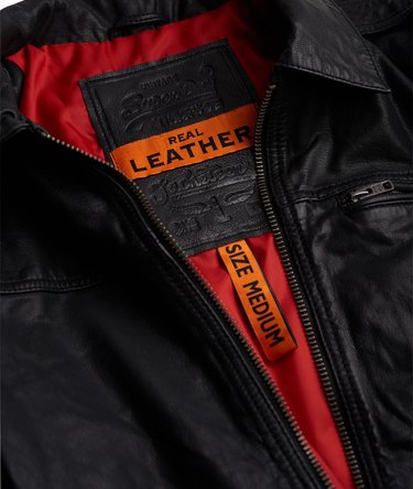 Superdry men’s Hero Benjamin leather jacket. This classically designed leather jacket is a must for all wardrobes. Made from soft leather, the Benjamin jacket features a single collar, full length zip fastening, three front pockets and popper cuffs. Inside, the Hero Benjamin is fully lined in a contrast colour and has a single inside pocket. The Benjamin leather jacket is finished with a metal Superdry logo badge on the sleeve.