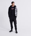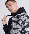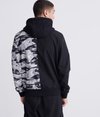 Superdry men's hooded desert alchemy bomber jacket. This bomber jacket features a zip and popper fastening, two front popper fastening pockets, drawstring hood, a removable hood and placket design with zip fastening making this a 2 in 1 jacket and ribbed collar and cuffs. Finished with a panelled design, an embroidered Superdry logo on the chest and a rubberised logo badge on one sleeve.