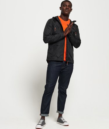 Superdry men's Offshore packable cagoule. Combining style with practicality, this cagoule features a single layer zip fastening, two zipped front pockets and an embroidered logo design on the chest. Folding neatly into an inside pocket with hook and loop fastening, this cagoule is a must have this season.