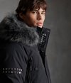 Superdry men's Premium ultimate down parka coat. Wrap up warm this season with one of our down parka coats. Featuring a 90/10 premium duck down fill rating, a zip and popper fastening, bungee cord adjustable hood with removable faux fur trim, 9 pockets including an inner one to store your valuables, bungee cord adjustable waist, and ribbed cuffs. This premium coat is finished with a Superdry logo patch on one sleeve, and Superdry Premium embellishments on the other sleeve.