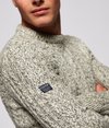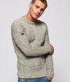 Superdry men's Jacob Heritage crew neck jumper. Perfect for creating a rugged outdoors look, this heritage cable knit crew neck jumper features ribbed cuffs and neckline along with a leather Superdry logo patch on the ribbed hem.