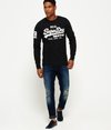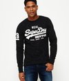 Superdry men’s Vintage Logo crew neck sweatshirt. This crew neck sweatshirt features a Real Superdry logo print across the chest and a number print on one sleeve, ribbed cuffs and hem. The Vintage Logo sweatshirt is finished with a Superdry logo tab on the side seam.