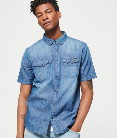 Superdry men’s Dragway Denim short sleeve shirt. This short sleeve denim shirt features a popper fastening, two breast pockets and is finished with a Superdry logo tab on the pocket.