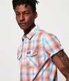 Superdry men’s Washbasket short sleeve shirt. This checked shirt features a front button fastening, two front button fastened pockets and a Superdry logo badge on one of the pockets. The Washbasket shirt is finished with a Superdry logo badge on the sleeve and a Superdry logo tab on the side seam.
