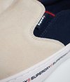 Superdry men's International slip on trainers. A staple pair of trainers, the International slip on trainers feature panel detailing, a heel pull tab and logo branding around the sole. The trainers are completed with a logo badge on the heel.