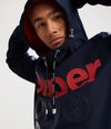 Superdry men's Snow Tech Combat hoodie. This hoodie features a fleece lining to keep you warm in the snow, as well as zip fastened mesh underarm to keep you cool when you need it. The hoodie benefits from a mesh pouch pocket on the inside and a drawstring adjustable hood. The Snow tech combat hoodie is finished with ribbed cuffs with thumbholes, a ribbed hem and a rubber Superdry logo tab on the cuff.