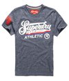 Superdry men's Double Drop Grit t-shirt. A crew neck t-shirt with a three-colour multi-texture print design on the chest and a cracked print JPN on the right sleeve.