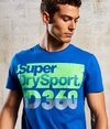 Superdry men’s Sport Logo Speed Dry T-shirt. This T-shirt features a large graphic print on the front, a crew neckline with a reflective stripe on the inside and is finished off with a Superdry logo patch on near the hem.