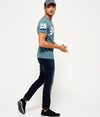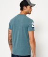 Superdry men’s Vintage logo duo t-shirt. A short sleeved t-shirt featuring the classic Vintage Superdry logo in a cracked print two colour design as well as number print on one sleeve. The t-shirt is finished with a Superdry logo tab on the side seam.
