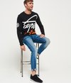 Superdry men’s Crew athletic T-shirt. This long sleeve t-shirt features a Superdry crew logo print wrapped around the t-shirt and on the sleeve. For the perfect weekend chilled look pair with Slashed Skinny Jeans.