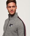 Superdry men’s Time Trial track top. Keep warm this season in the Time trial track top. Featuring a single zip fastening, stripe detailing down each sleeve and a Superdry logo embroidered on the chest. This track top also features two zip pockets, ribbed cuffs and hem as well as a Superdry tab on the hem for the finishing touch. This track top is a great athleisure item to have in your wardrobe this season, pair it with joggers or jeans and trainers for a relaxed, off-duty look.