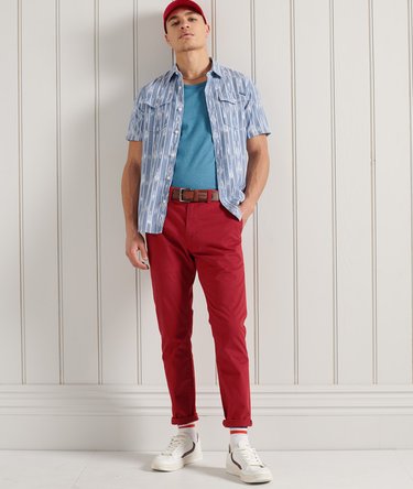 Superdry's Core Slim Chino Trousers are the ultimate wardrobe staple. Wear them dressed up or down depending on the occasion. Features include zip and button fastening and a five-pocket design.