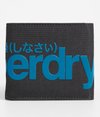 Superdry men's 2 popper wallet. This wallet features a main two popper fastening, a note pocket, four card slots and a zip fastened coin pocket. Finished with a textured Superdry logo and a Superdry logo patch on the card slots.