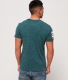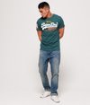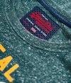 Superdry men's Vintage Logo tri t-shirt. A crew neck t- shirt featuring a tri-colour Superdry logo graphic on the chest and number graphic on the sleeve. Both graphics have been designed in a cracked effect finish to add to the vintage feel. Style with jeans and a bomber jacket for a relaxed, casual look.