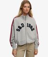 Part of our classic collection, the Athletic Essentials Appliqué Loose Zip Track Top is an elevated, cosy addition to your layering options this season. Crafted with a statement appliqué text across the chest and contrasting stripes on the arms, it's the perfect balance of vintage style and authentic Superdry.