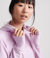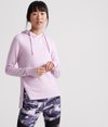 Superdry women's Active Studio luxe hoodie. The perfect cover up for to and from the gym, this hoodie has been crafted from a soft modal blend for your comfort and is lightweight in style. The hoodie features a drawstring hood, split side seams and thumb holes in the cuffs. The hoodie is completed with a small logo badge above the hem.