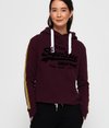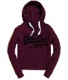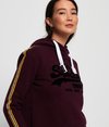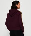 Superdry women's Vintage Logo League College crop hoodie. Layer up in style this season with the Vintage Logo League College crop hoodie, featuring a draw cord adjustable hood, ribbed cuffs and a textured Superdry logo graphic on the chest. This hoodie is completed with stripe detailing down the sleeves and a Superdry logo tab in one side seam.