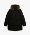 • Hooded with a detachable faux fur trim and an adjustable drawcord