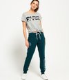 Superdry women's Athletic League Relax Cuff joggers. These joggers feature a drawstring elasticated waistband, two front twin pockets and a ribbed cuff to the leg. Below one of the pockets and down the left leg you'll find Superdry branding as well as a Superdry logo patch on the waistband.