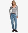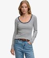 Elevate your everyday basics with our Athletic Essentials Striped Long Sleeve Top. Crafted from ribbed, stretchy fabric and a flattering slim fit, it delivers all-day comfort. The timeless stripe pattern adds a subtle 90’s-inspired touch, perfect for layering or making a statement on its own.