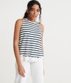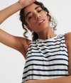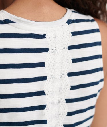 Superdry women's Lace mix vest Top. This lace trim vest top features a wrap back desin with lace trim, a Superdry metal logo badge to the hem and lace detailling to the hemline.