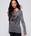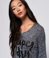Superdry women's Northern Lights long sleeve top. This cotton blend top will be a great addition to your wardrobe this season. Featuring a textured Superdry script on the chest, and a dipped hem to add extra style, and all finished with a Superdry logo tab on the hem. Update your casual look and pair this comfy top with your favourite pair of jeans and trainers this season.