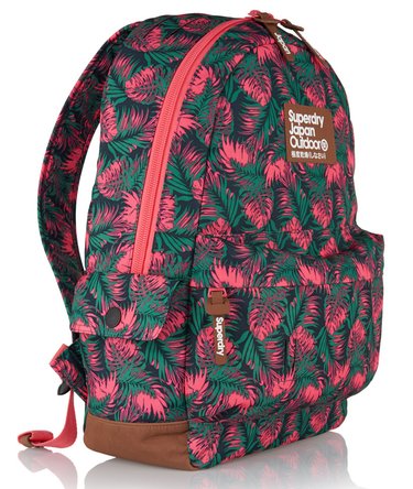Superdry Hawaiian Leaves Montana rucksack. The classically styled Montana rucksack with a leaf print design features padded straps and back panel, grab handle, a large main compartment, three outer pockets and is finished with a Superdry Japan Outdoor logo. 22 litre approximate capacity.