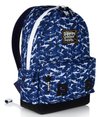 Superdry Ocean Montana Rucksack. A simple, staple rucksack with an all over shark print, featuring padded back and straps and a large main compartment. The Ocean Montana also features a grab handle, twin side pockets, a zipped outer compartment and is finished with a Superdry Outdoor Supply logo patch on the front.