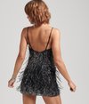 The 1920s were an iconic time for fashion, with women redefining style and rebelling against society's norms. Our Fringed Sequin Slip Mini Dress pays a loving homage by taking a contemporary silhouette and pairing it with timeless embellishments to create a uniquely edited look. Stand out and make an effortless statement with the delicately placed sequin fringe and satin piping. Whether you're wearing a jacket and boots to keep it authentic, or creating a refined look with heels and a clutch bag, this dress is designed for the wearer who loves movement and charm without restraint.
