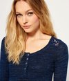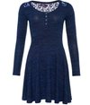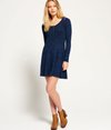 Superdry women’s Peggy Grandad skater dress. A soft jersey, long sleeved skater dress in a twisted yarn. The dress features four buttons on the chest and a lace top back panel. The skater dress is finished with a subtle metal Superdry logo above the hem.