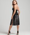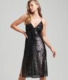 Make a statement from the moment you walk into a room with our Plunge Sequin Midi Slip Dress. This exquisite piece takes the classic midi dress and elevates it to a new level. The sequin finish will ensure you catch the light no matter where you are. Whether you're on the dance floor or getting a drink, the light will ripple through the sequins and create a shine that floats through with you as you move. Cross-over straps and side split legs complete the look so you can embody that sleek chic style, and exude opulency.