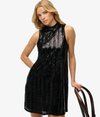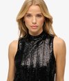 Define vintage glamour itself in our Sleeveless Sequin A Line Mini Dress. The stars in the night sky will wish they could shine as you do, with the thousands of sequins tailored into the dress illuminating your flattering silhouette, accentuated by the A Line fit. Define the evening with dazzling flair, with this elevated partywear design.