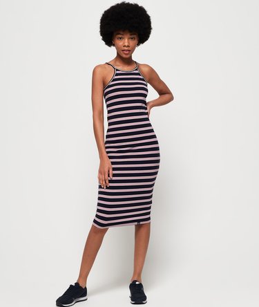 Superdry women's Tiana midi dress. This midi dress features and all over print design, a racer style back and is finished with a Superdry logo tab on the hem. A perfect addition to your new wardrobe, this dress can be dressed up with a pair of heels or dressed down with a pair of trainers.