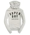 Applique Funnel Hoodie. This Applique hoodie features a funnel hood design, long sleeves with ribbed cuffs and hem and two pockets. The funnel hoodie is finished with an Applique design Superdry logo across the chest and Superdry logo tab on the hem.