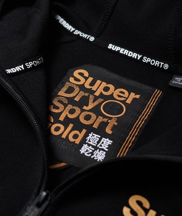 Superdry women’s gym tech gold award zip hoodie. This slim fit zip through hoodie is perfect to layer up during a warm up or cool down, featuring bungee cord adjusters in the hood, as well as the hem. The hoodie has elasticated cuffs, two front zip pockets and finished with a Superdry logo printed on the chest.