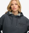 • Hooded with an adjustable drawcord and ribbed trims