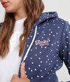 Superdry women's All Over Print zip hoodie from the Orange Label range. This hoodie features an all over print, a drawstring hood, two front pockets, and ribbed cuffs and hem. Finished with an embroidered Superdry logo on the chest, and a Superdry logo tab on one sleeve.