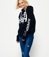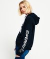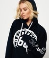 Superdry women’s oversized Urban hoodie. A comfortable, stylish hoodie perfect for cosy nights in. The oversized Urban hoodie features branded drawstrings, ribbed cuffs and hem, and a Superdry Original NYC cracked finished logo across the front that carries on underneath the front pouch pocket. This hoodie is finished with a Superdry NYC logo along one arm and a Superdry logo tab above the hem.